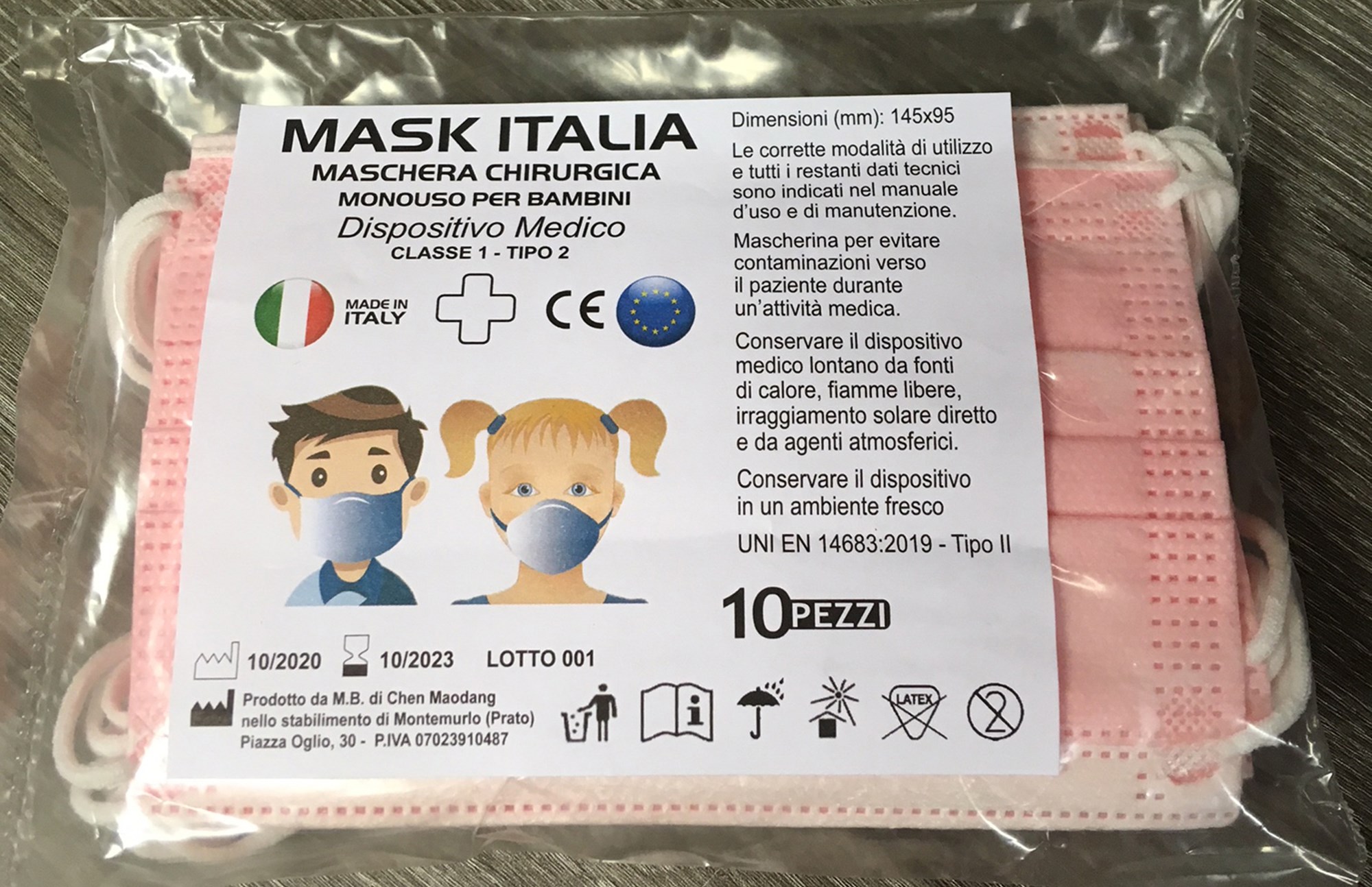 Mascherina chirurgica per bambini Dispositivo medico tipo II Made in Italy